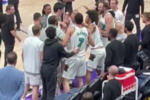 灰熊三日前客场140-103大胜爵士,但比赛中有球迷拍到,替补席贝恩和阿尔达马似乎发生了冲突。